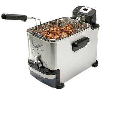 Emeril Stainless Deep Fryer The Emerilware Fryer is the perfect home fryer for your kitchen. Designed to out-fry all others. The Emerilware Fryer by T-Fal heats oil fast, ideal for crispy results. This large capacity stainless steel fryer holds 3.3 liters of oil or 2.65 pounds of food. Equiped with a digital adjustable indicator light, notifying you when the oil is ready. Its easy to clean and 100% dishwasher safe (except for the heating unit). Enjoy perfect frying results everytime. Emerilware Deep Fryer Features: 1700 watts Holds 3.3 liters of oil Brushed stainless interior Digital timer for precise frying Fry basket Viewing window Anti grease filter One year warrantyAvailable at Amazon Check Price Now!